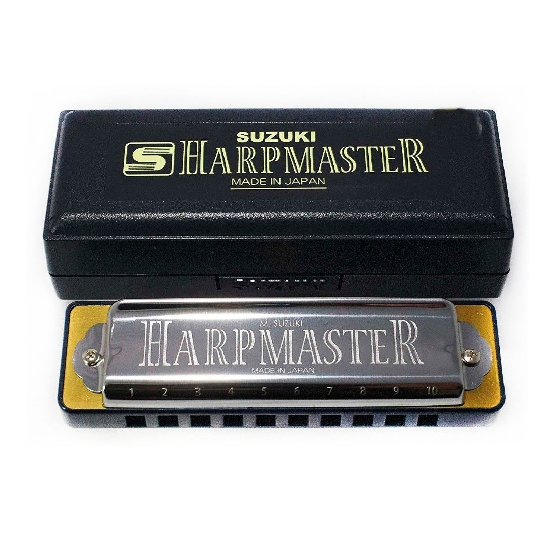 La armonica Suzuki está fabricada en Japón y es recomendable para interpretes Blues, Folk, Rock y Country. Presenta cuerpo de plástico, cubierta exterior de acero fino y agujeros de nota centrados. Cuenta con 10 agujeros y 20 lengüetas de latón afinadas por láser. Incluye estuche de plástico.