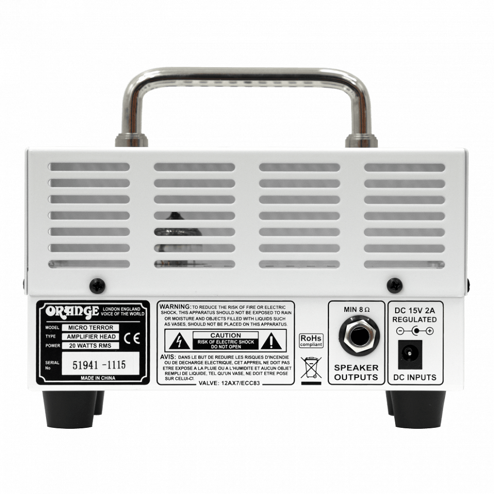 Con un peso de menos de 1 kilo, el Micro Terror es posiblemente el cabezal de amplificador más portátil del mercado. Cuando se combina con su gabinete PPC108 a juego, la entrada auxiliar y la salida de auriculares del Micro Terror lo convierten en un compañero de práctica perfecto, lo suficientemente pequeño para incluso el aparador más desordenado.