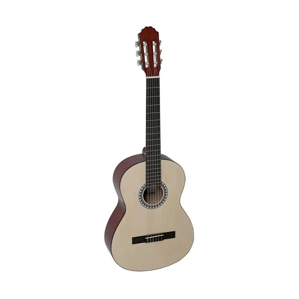 Guitarra Clásica con tapa de Abeto, fondo y aros de Tilo. Ribetes del cuerpo en ABS, diapasón y puente en madera de Pakka, trastes en níckel y clavijero cromado. Acabado brillante. Cuerdas Hannabach 600 hechas en Alemania. Tamaño 4/4. Escala 650mm, cejuela 52mm. Color Natural.