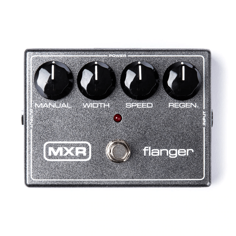El MXR Flanger crea una variedad de sonidos salvajes, desde dinámicos efectos de avión a reacción o geniales efectos espaciales hasta breves retardos, coros y vibrato. Regrese el Ancho a cero para desactivar el barrido automático, luego use la perilla Manual para colocar físicamente el efecto en cualquier lugar del espectro de frecuencia; Úselo con guitarra, bajo, teclados o voces.